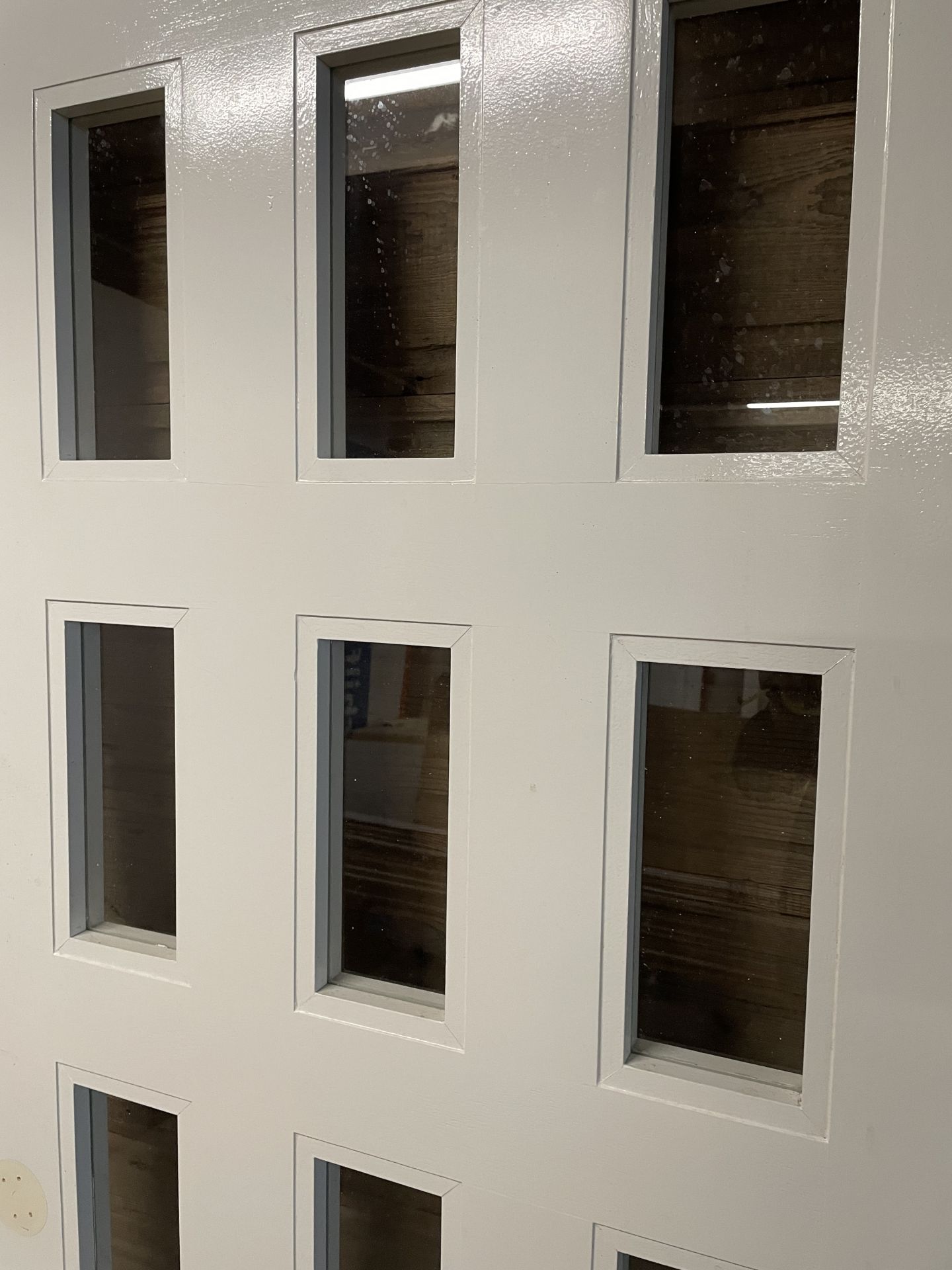 Leuke deur met 18 raampjes. We kunnen de deur voor u nog op maat maken!