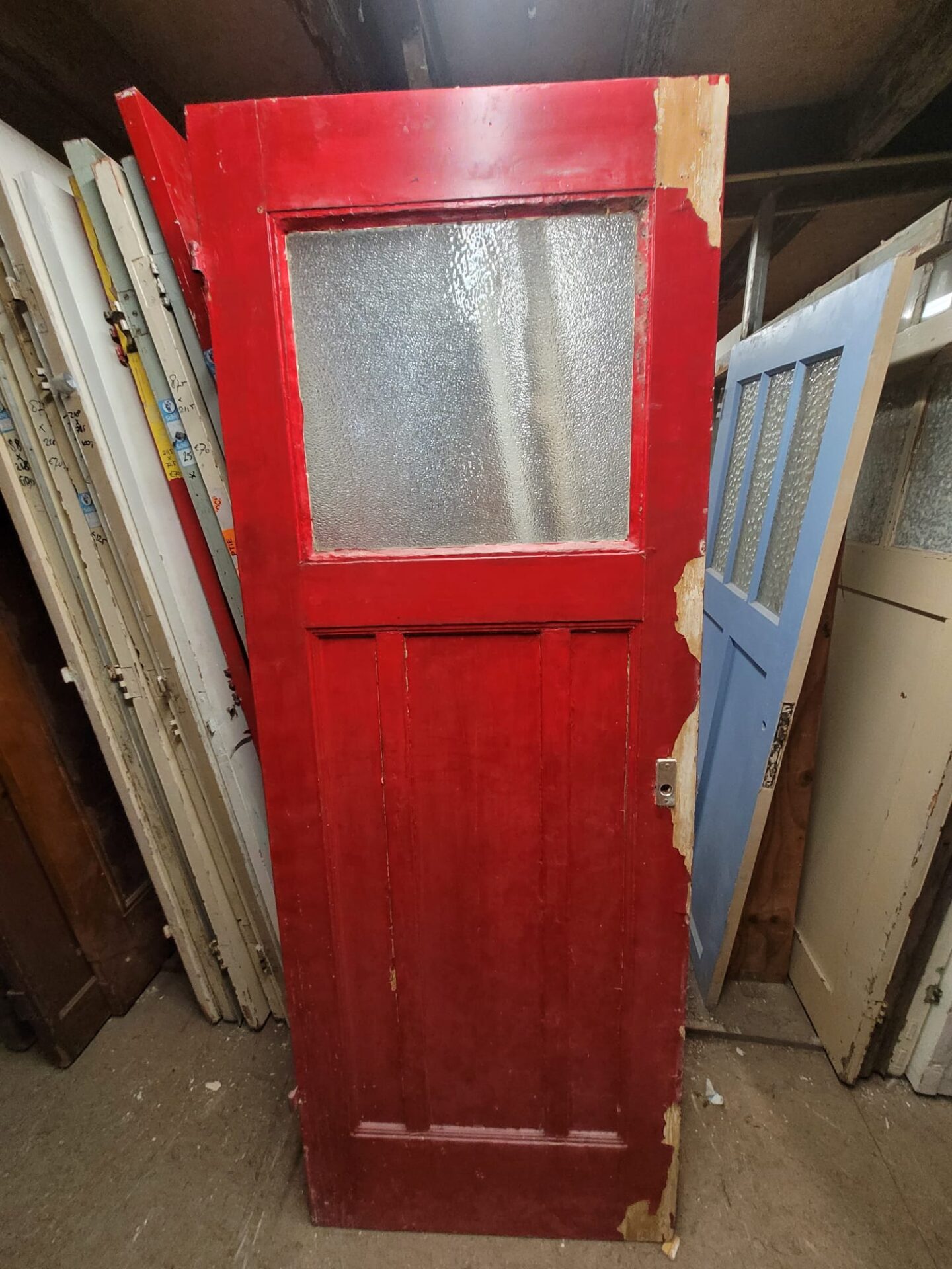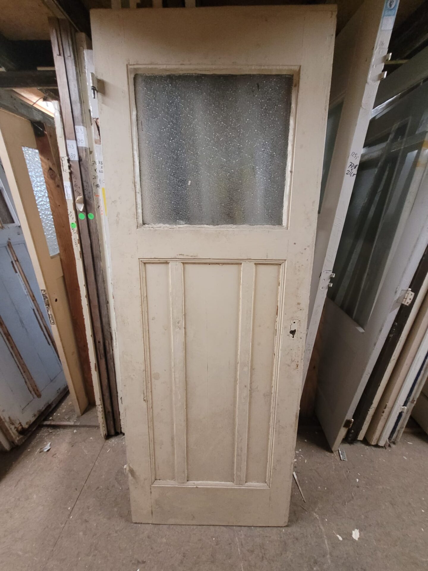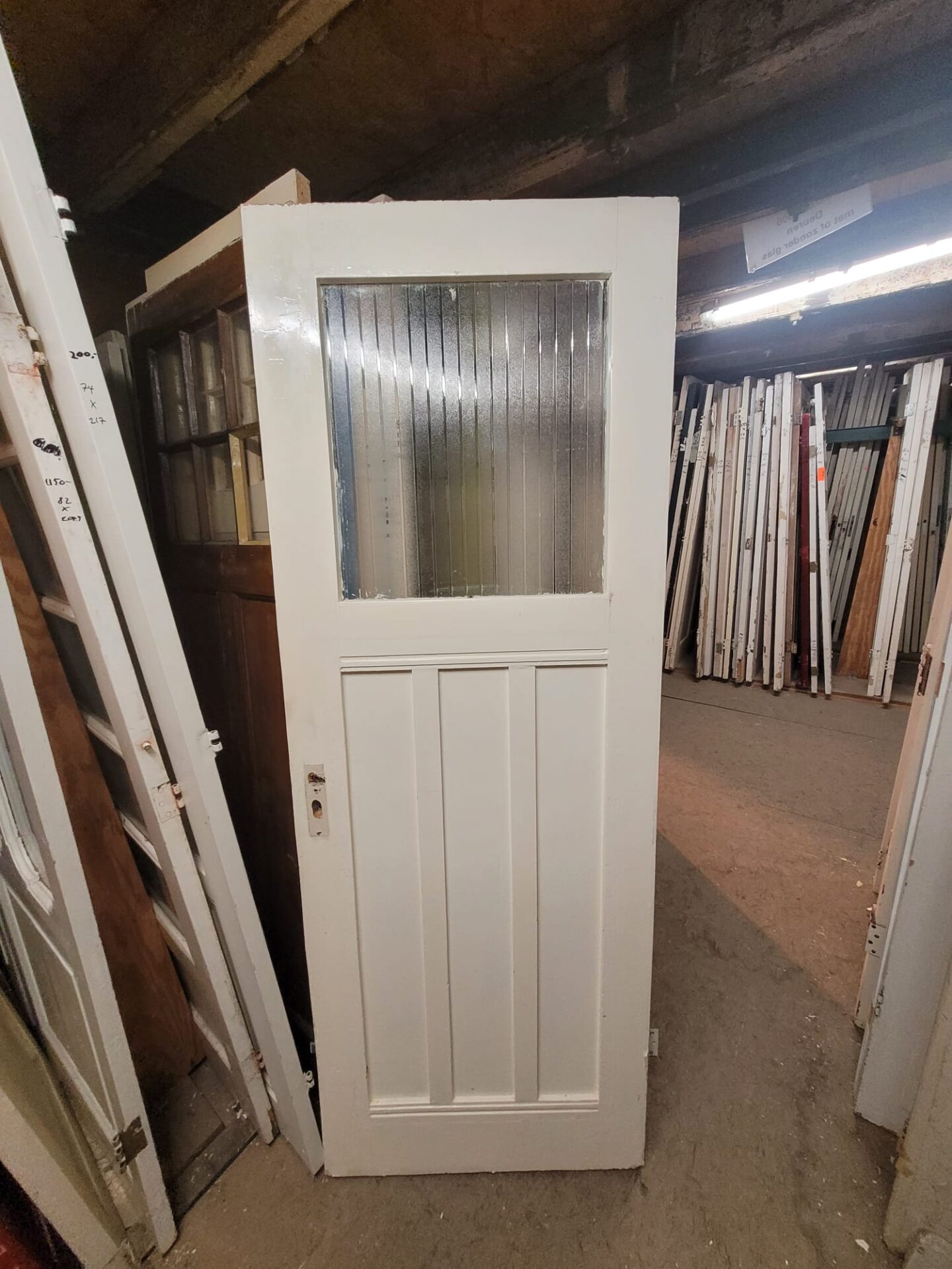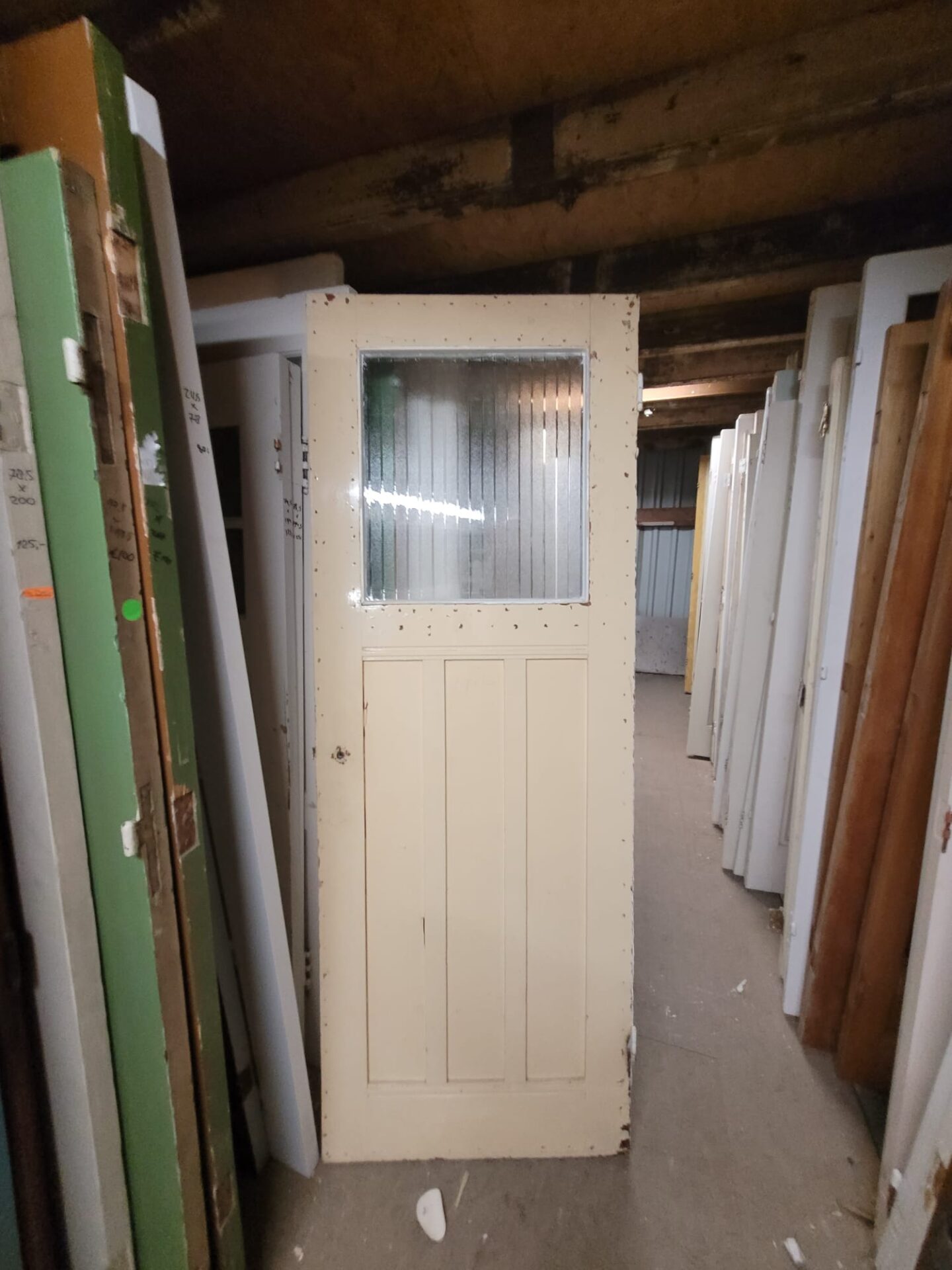 Deze deuren hebben het uiterlijk met drie houten panelen onder een enkele glasruit als bovenlicht. Dit geeft een klassieke uitstraling met voldoende lichtdoorlatendheid. Ze zijn verkrijgbaar in verschillende maten, kleuren en glassoorten. Indien gewenst kunnen we het glas vervangen en de deur op maat maken. Elk exemplaar is uniek.