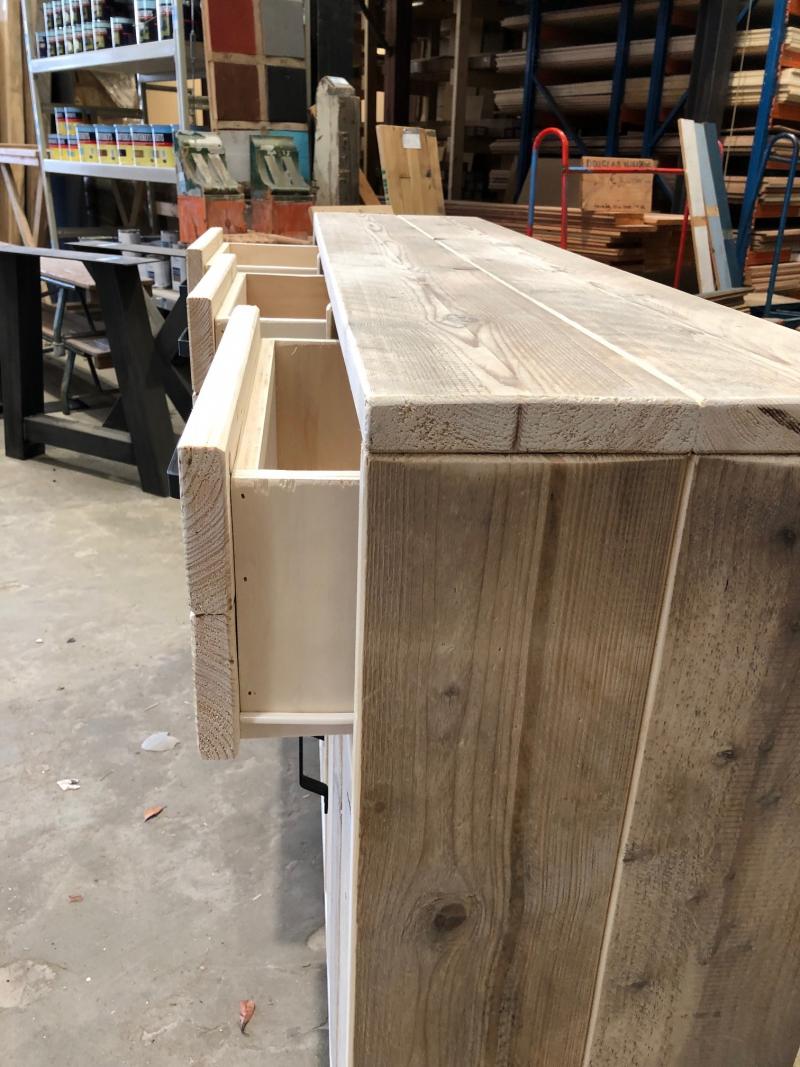 De maten, indeling en afwerking zijn volledig aan te passen. Kies zelf je formaat, houtsoort of laat het in een kleur afwerken die past bij jouw interieur. Een uniek meubel met een verhaal.