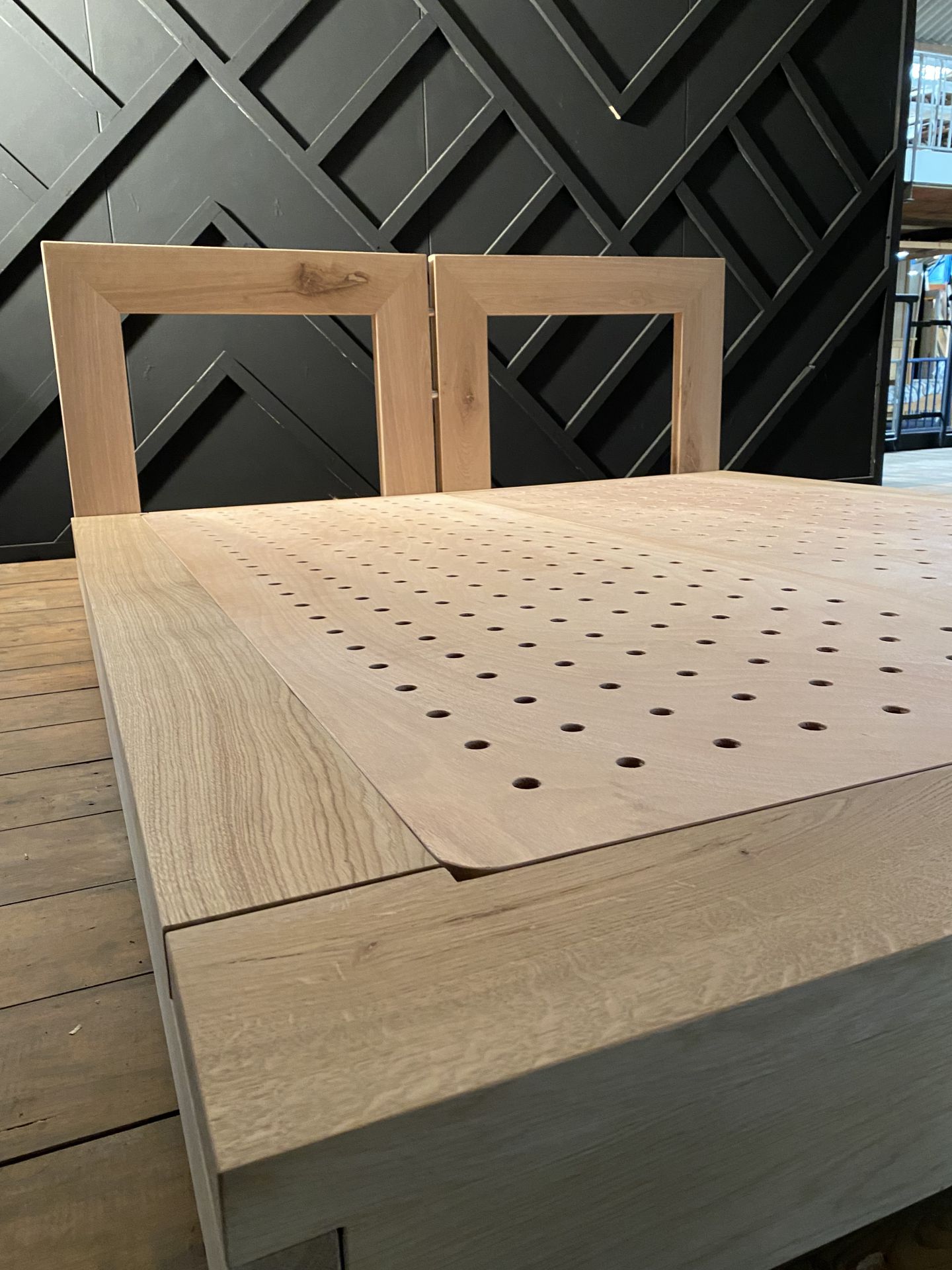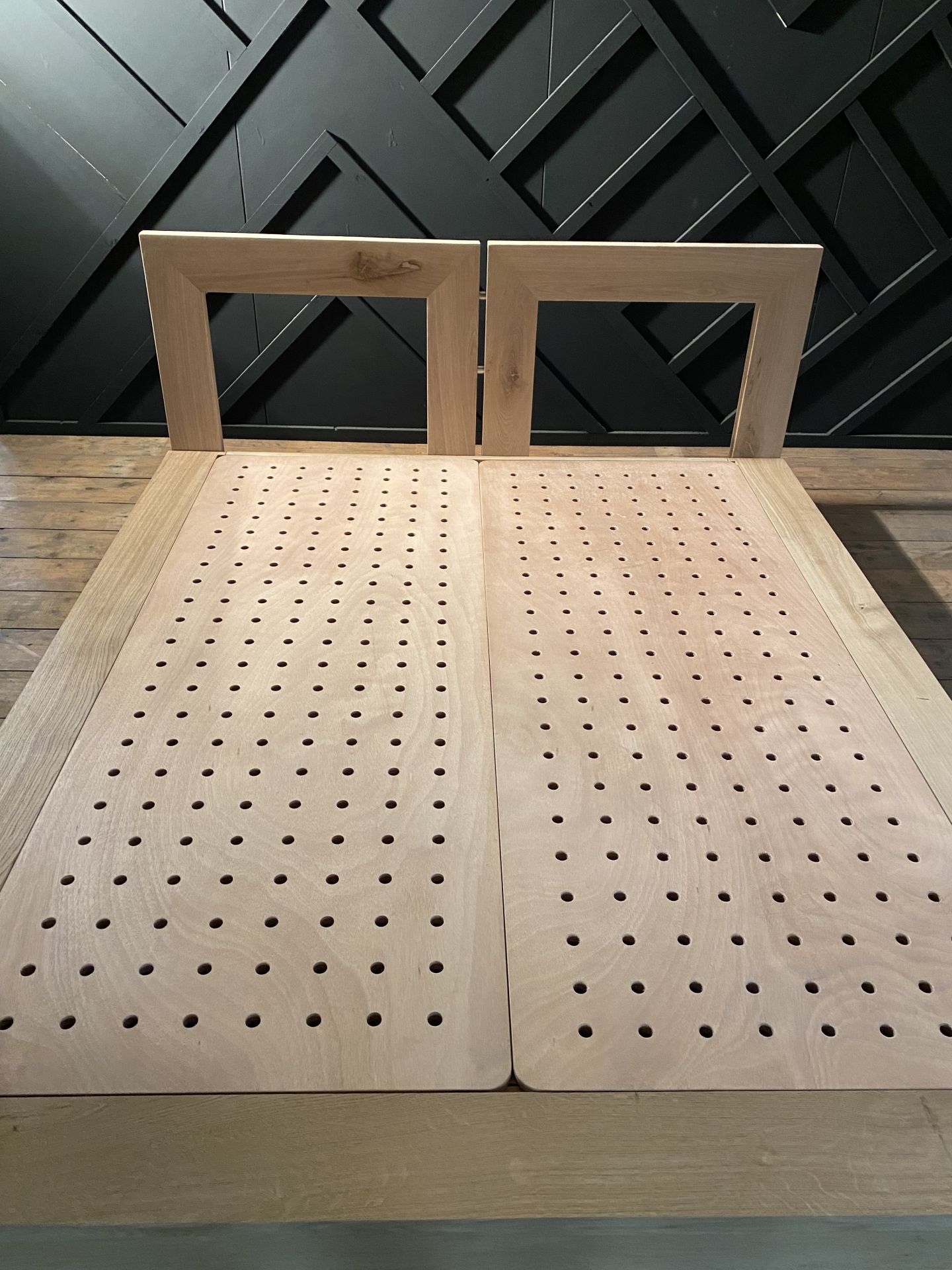 Ontdek het comfort en de charme van een op maat gemaakt bed van massief eikenhout. Eiken staat bekend om zijn duurzaamheid, warme uitstraling en prachtige natuurlijke nerven, waardoor elk bed een uniek karakter krijgt. Onze vakmensen vervaardigen het bed volledig naar jouw gewenste afmetingen en stijl, zodat het perfect past in jouw slaapkamer en bij je interieur.