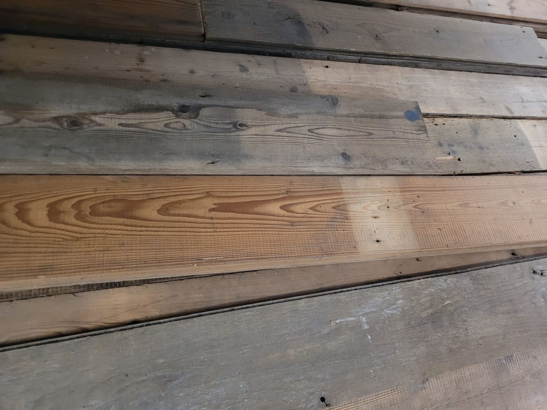 In Pad 6 vind prachtige gebruikte grenen vloerdelen. Deze vloer is handmatig spijkervrij gemaakt – een intensief proces waarbij elk deel met aandacht is gecontroleerd. Toch blijft het handwerk, dus we kunnen niet met 100% zekerheid garanderen dat elk spijkertje eruit is. Hou daar rekening mee bij verwerking.