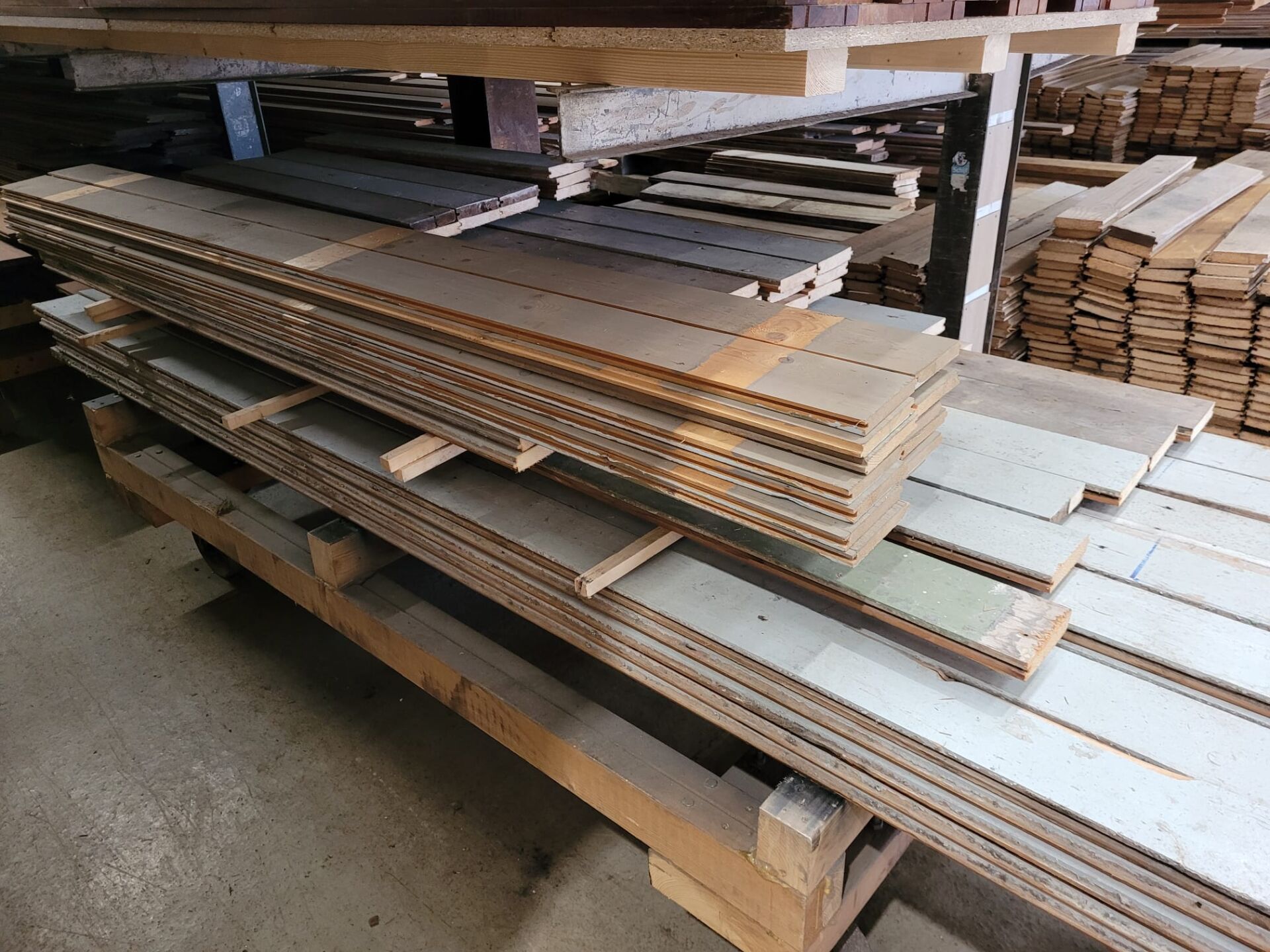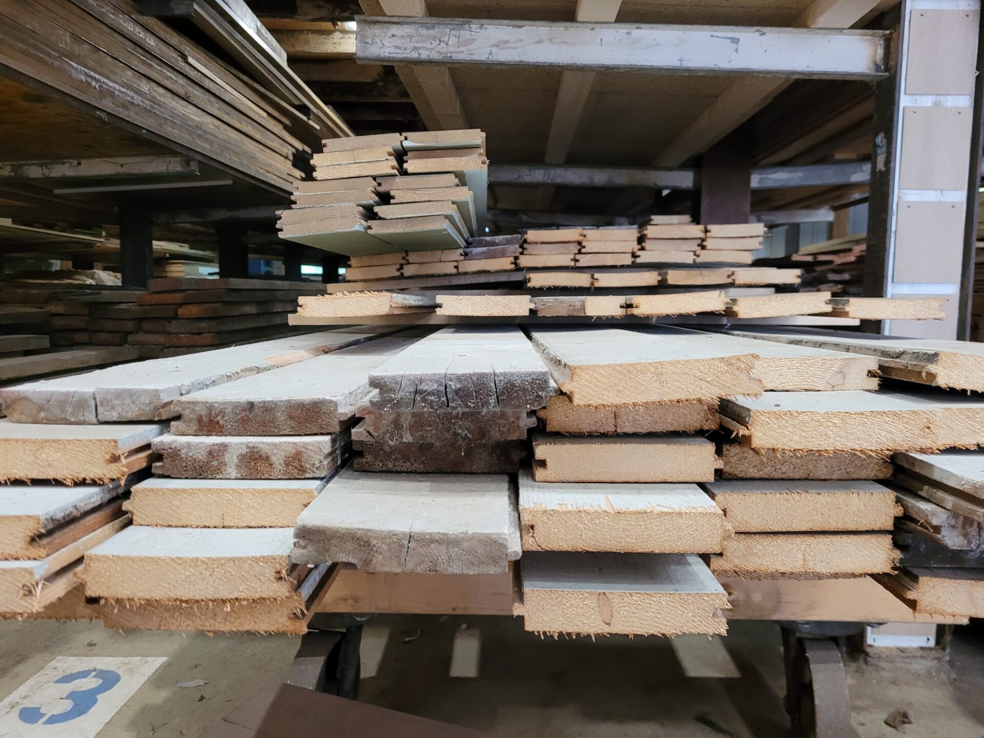 Door het mes en groef-systeem sluiten de planken mooi op elkaar aan, wat het verwerken gemakkelijk maakt. Elke plank is uniek in uitstraling, met sporen van gebruik en leven.