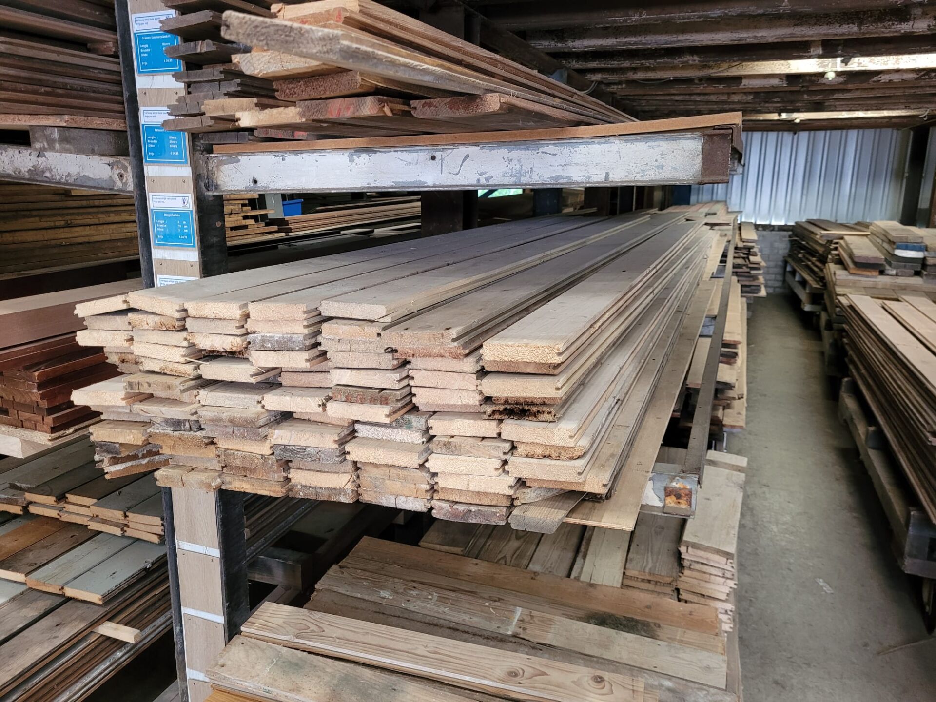 De planken hebben zichtbaar geleefd en dat maakt ze juist zo bijzonder: ze brengen direct warmte, sfeer en karakter in je ruimte. Door de handige sortering per lengte is het extra makkelijk om precies het aantal vierkante meters te pakken dat jij nodig hebt – zonder onnodig zoekwerk.