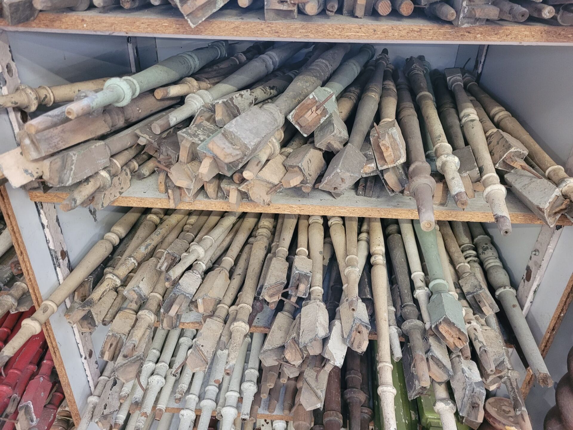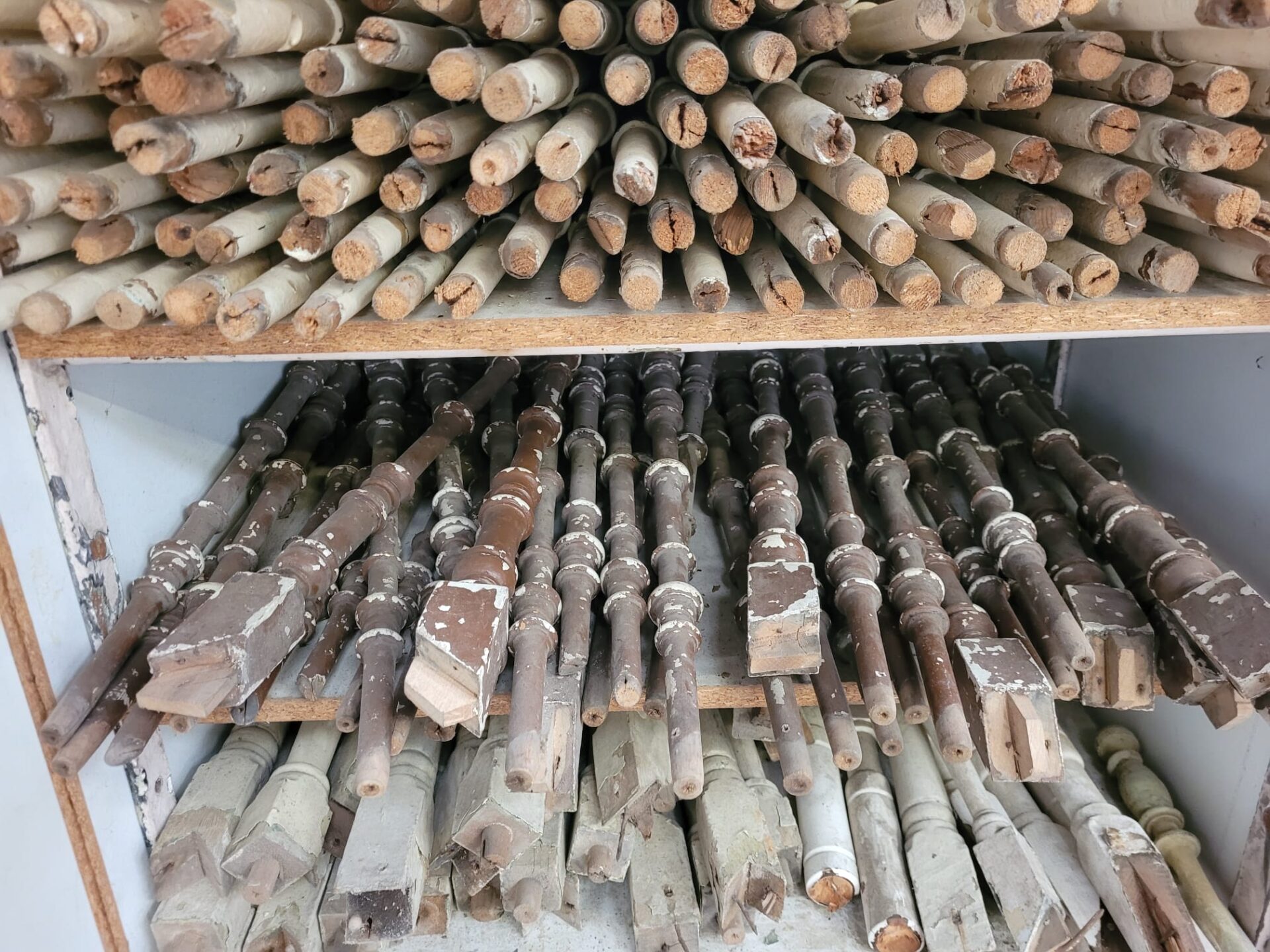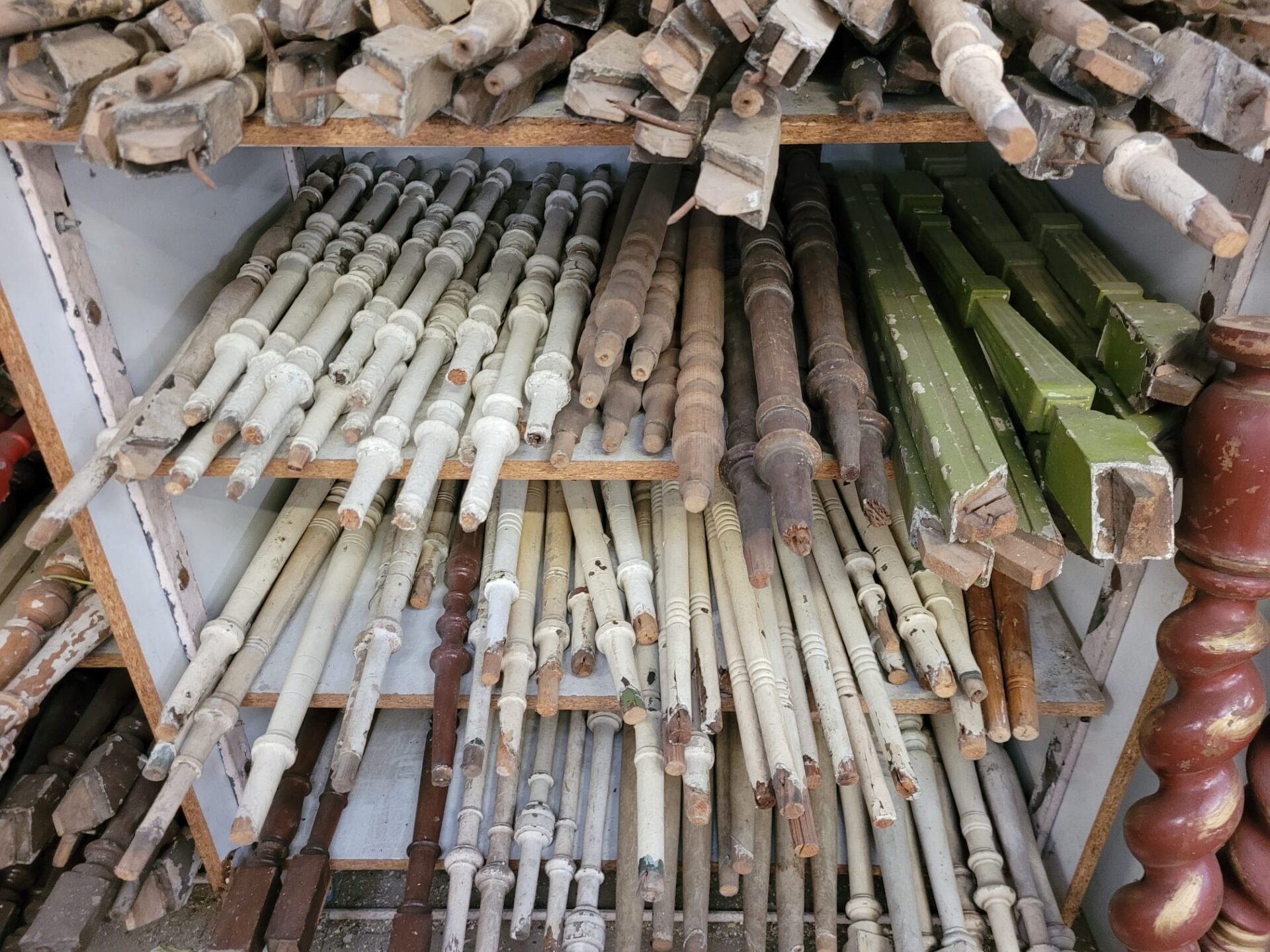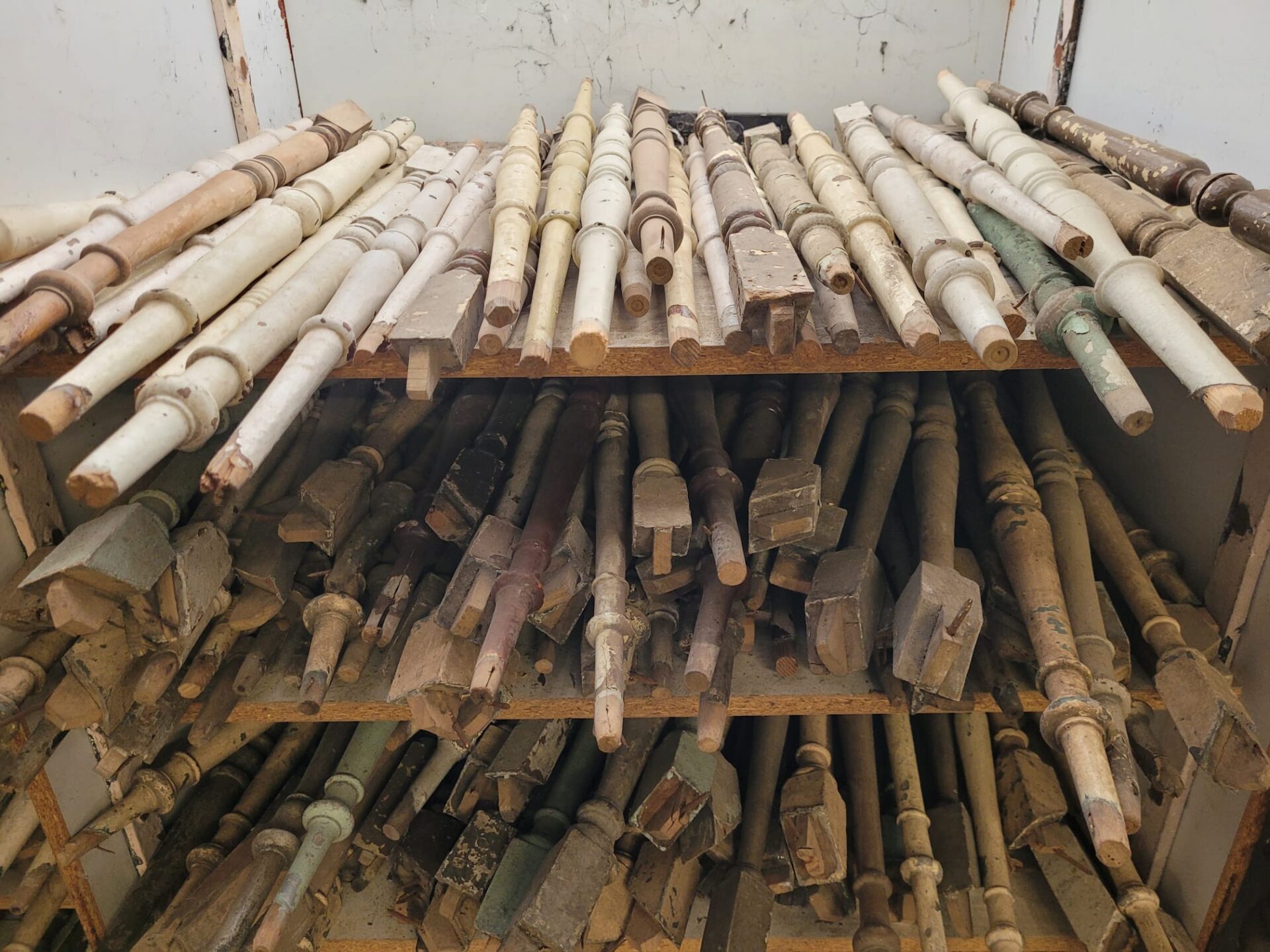 In onze winkel vind je een grote verzameling houten trapspijlen – stuk voor stuk uniek. Sommige nog met charmante verfresten, andere strak in de lak of juist helemaal kaal en klaar voor jouw eigen afwerking.