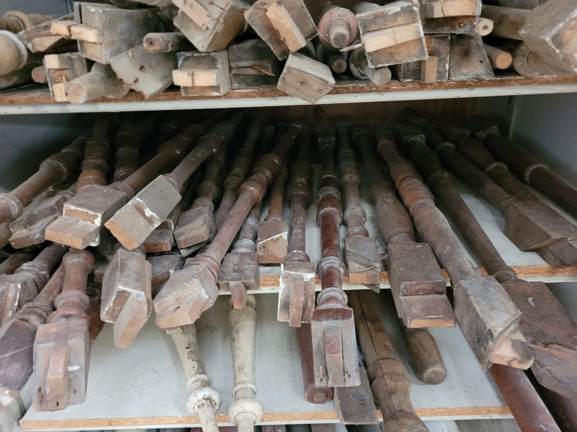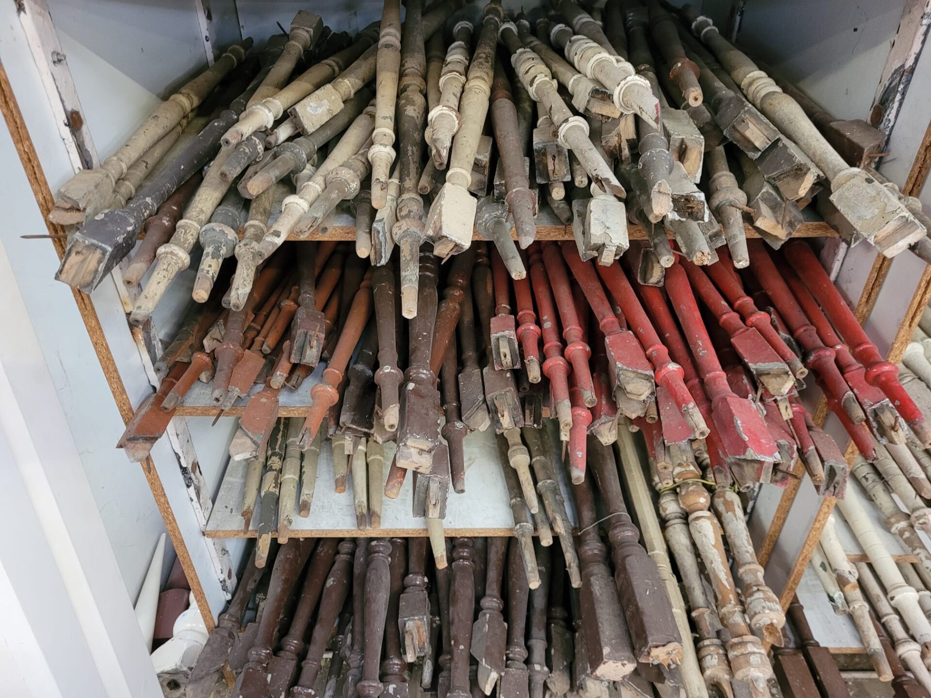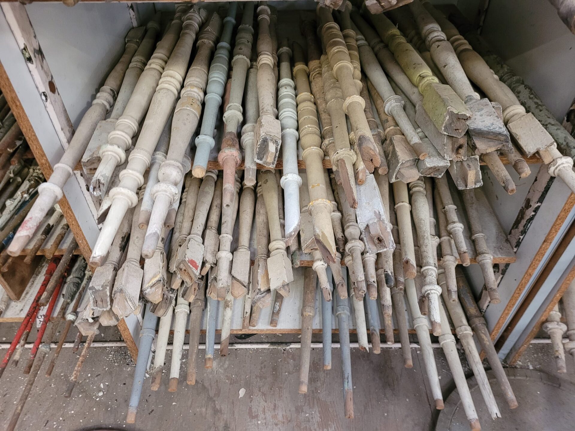 In onze winkel vind je een grote verzameling houten trapspijlen – stuk voor stuk uniek. Sommige nog met charmante verfresten, andere strak in de lak of juist helemaal kaal en klaar voor jouw eigen afwerking.