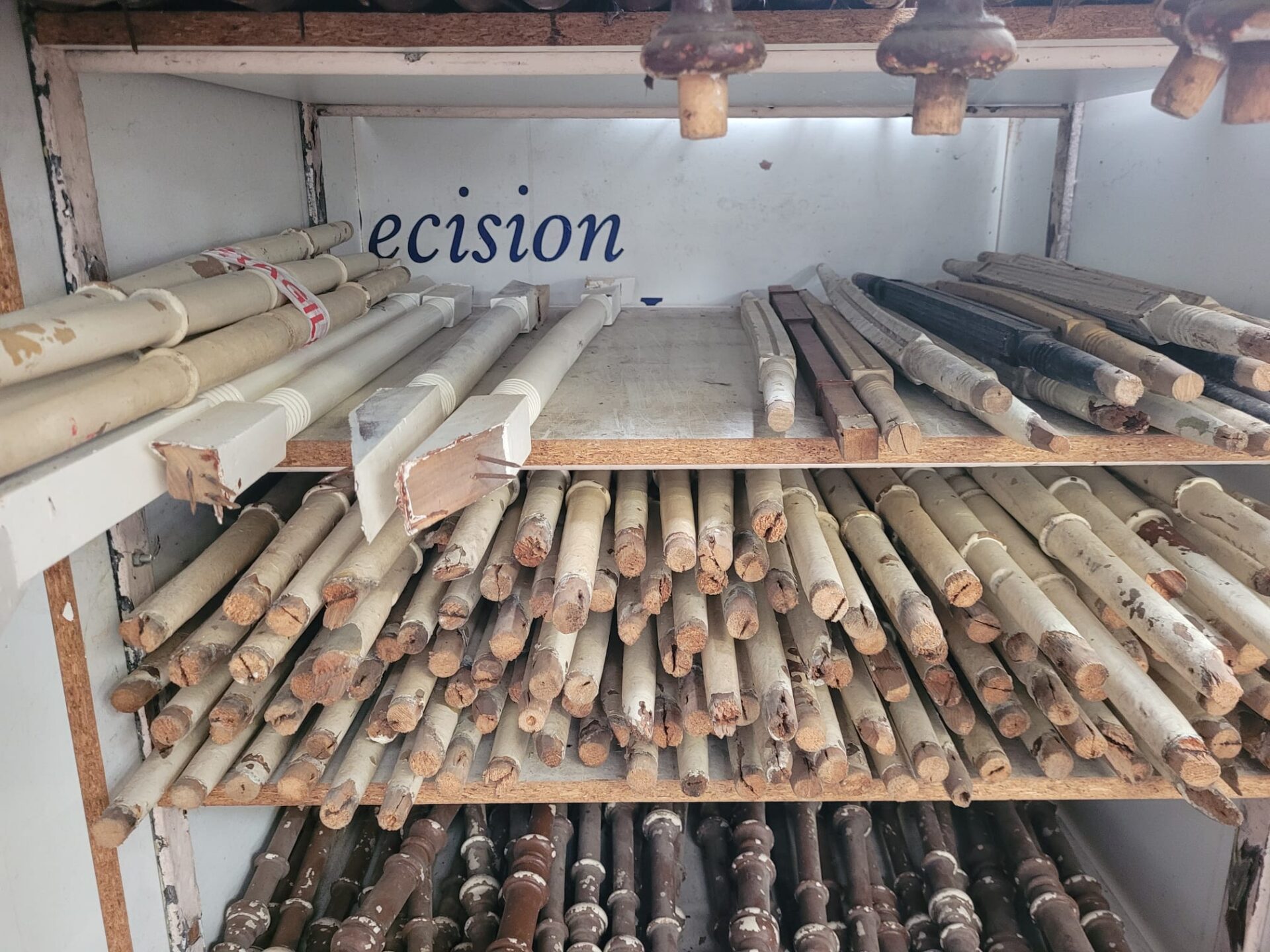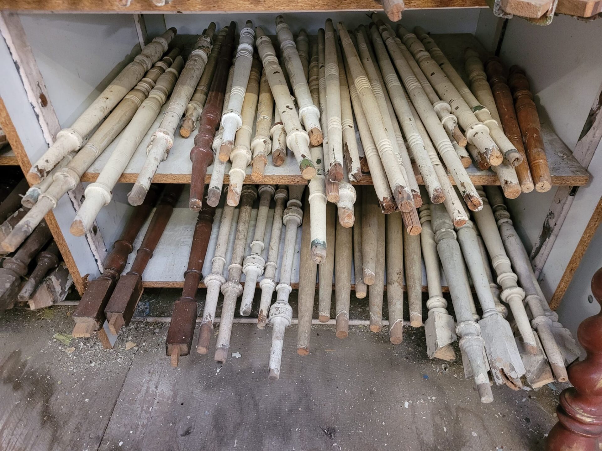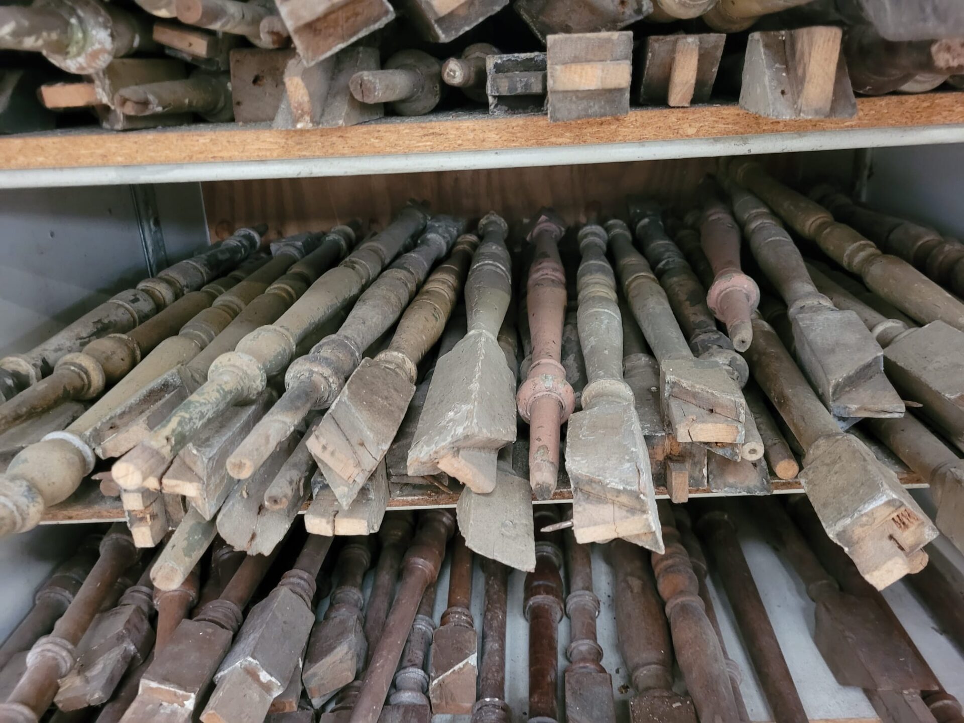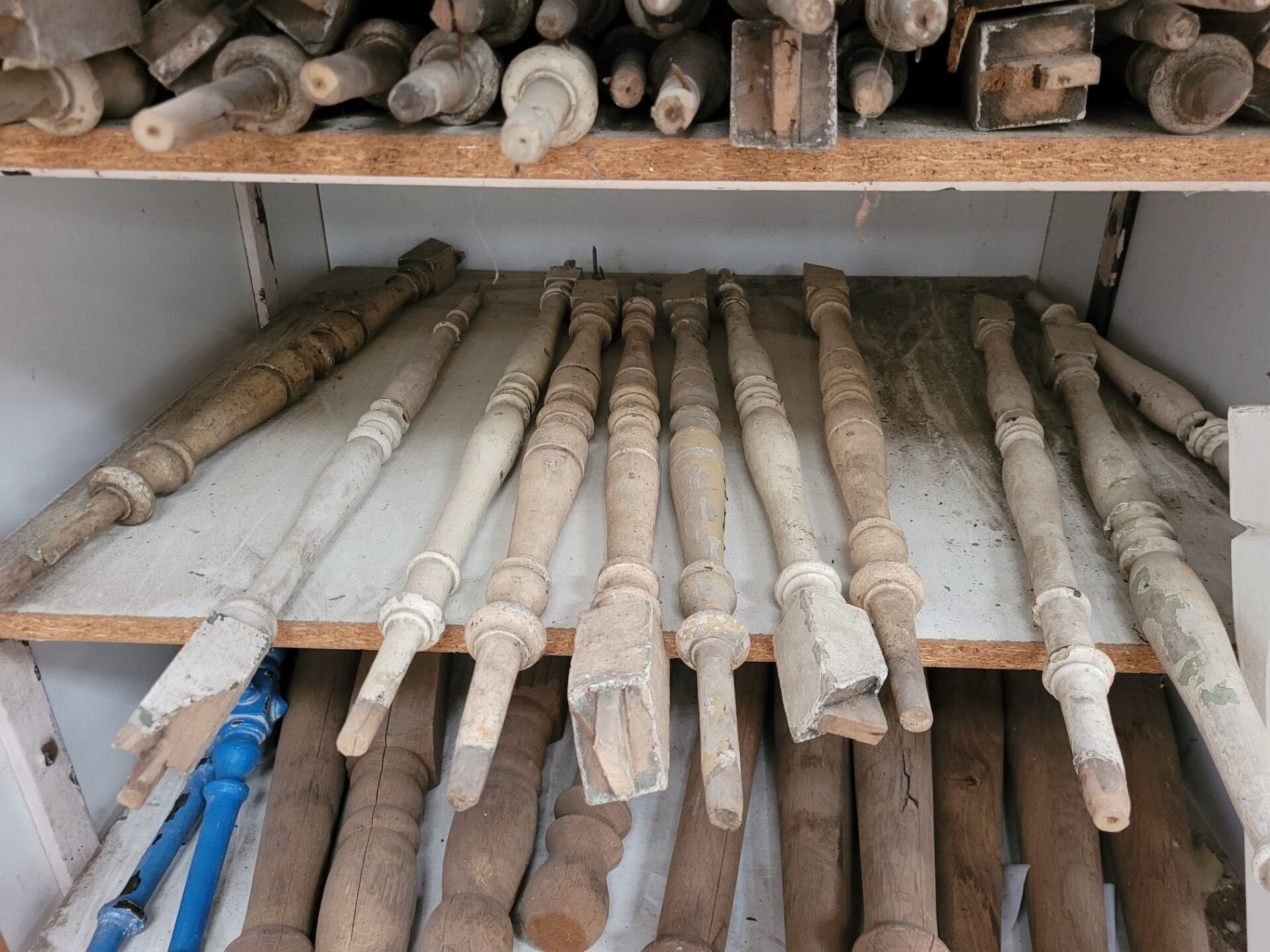 In onze winkel vind je een grote verzameling houten trapspijlen – stuk voor stuk uniek. Sommige nog met charmante verfresten, andere strak in de lak of juist helemaal kaal en klaar voor jouw eigen afwerking.