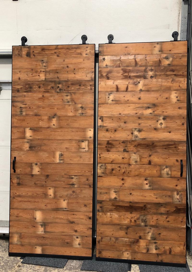 Loftdeur van gebruikte planken en geheel zelf samen te stellen.