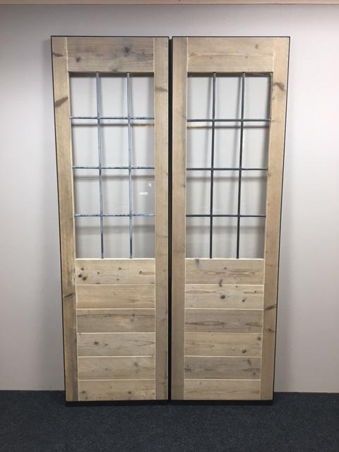 Loftdeuren gemaakt van glas in lood ramen en steigerhout.