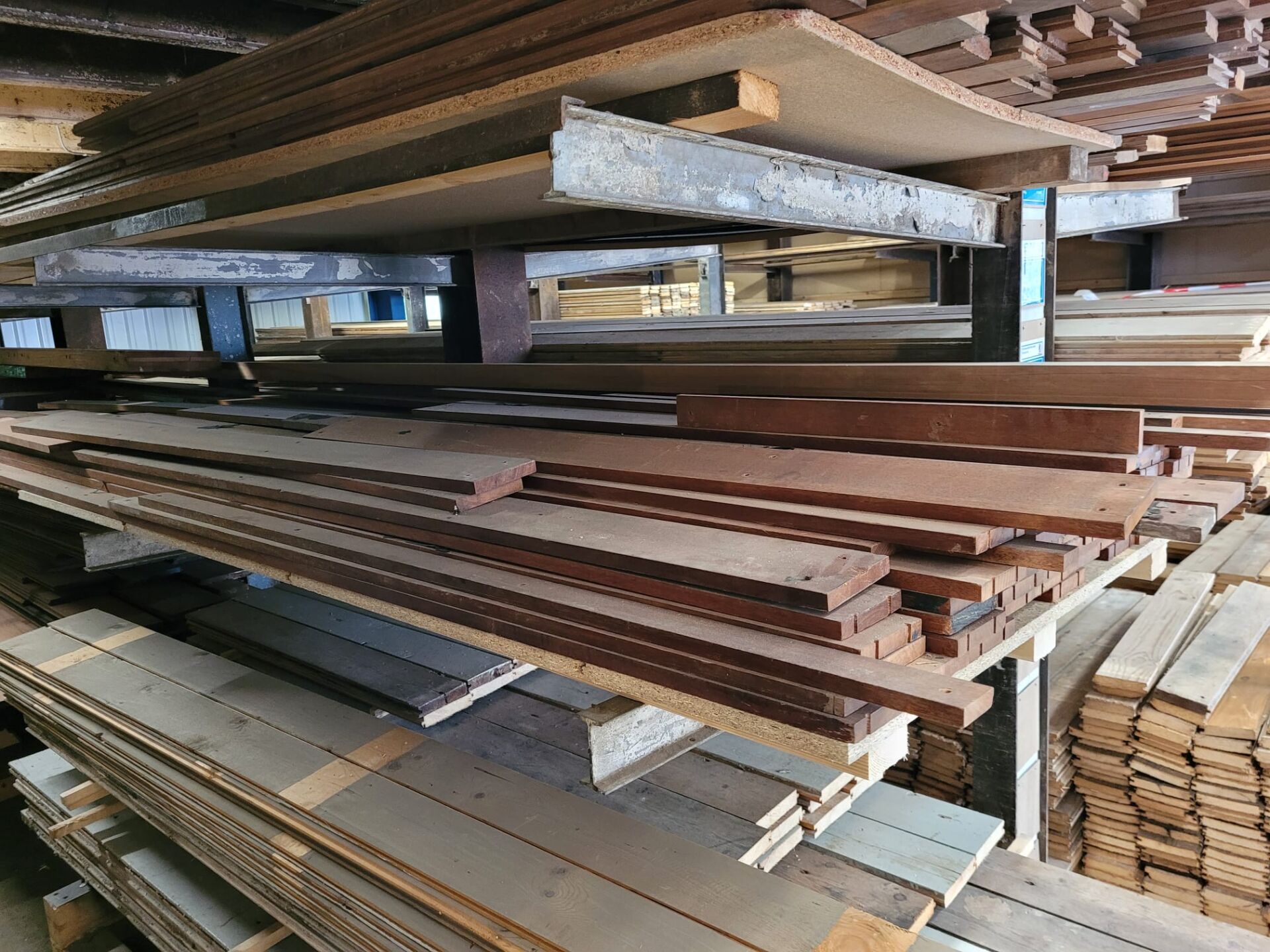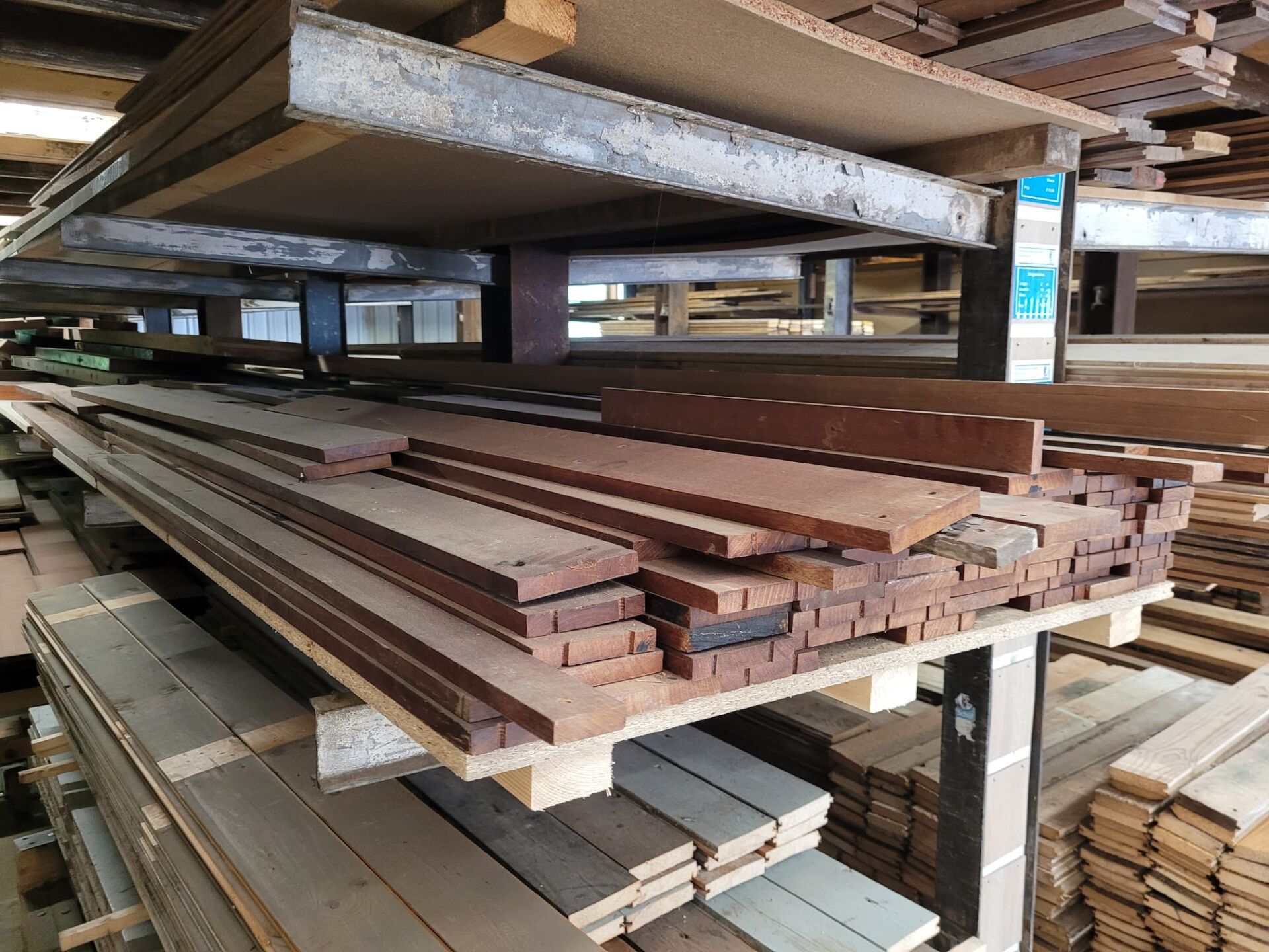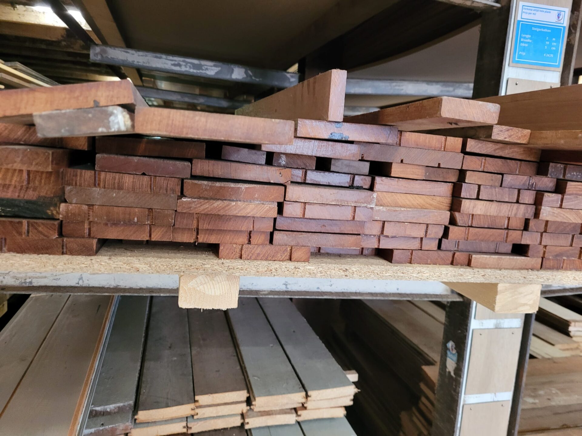 Deze gebruikte Merbau planken zijn 11 cm breed en 1,6 cm dik, met diverse lengtes. Merbau staat bekend om zijn hardheid en warme kleur, wat het een geliefde houtsoort maakt voor zowel vloer- als meubeltoepassingen. Door het eerdere gebruik hebben de planken een doorleefd karakter – ideaal voor wie houdt van hout met een verhaal. De planken zijn nog in goede staat en perfect voor hergebruik in bijvoorbeeld lambrisering, wandbekleding of kleinere vloervlakken. Elke plank is uniek, dus kom vooral langs om jouw favorieten zelf uit te zoeken in de winkel!
