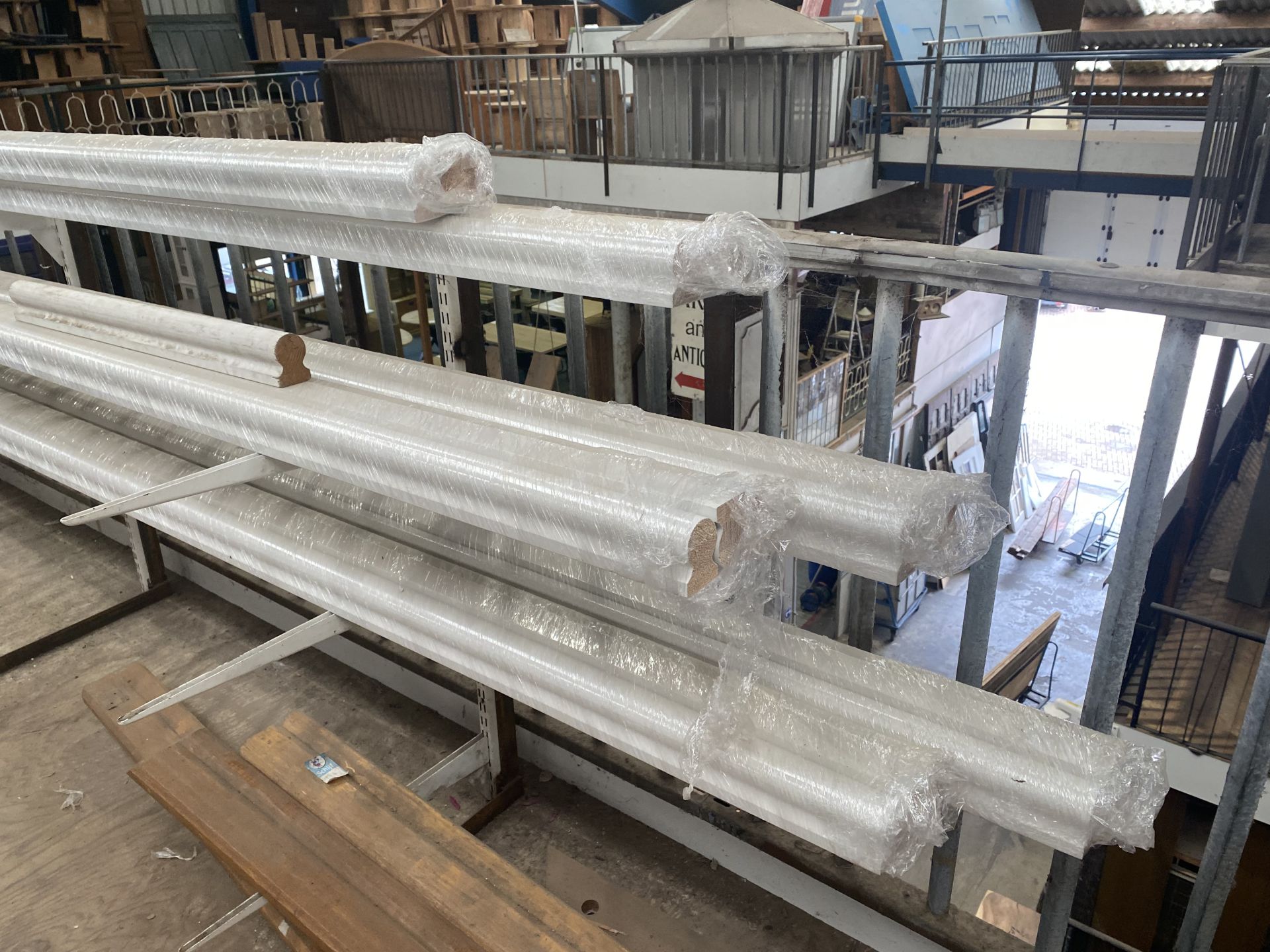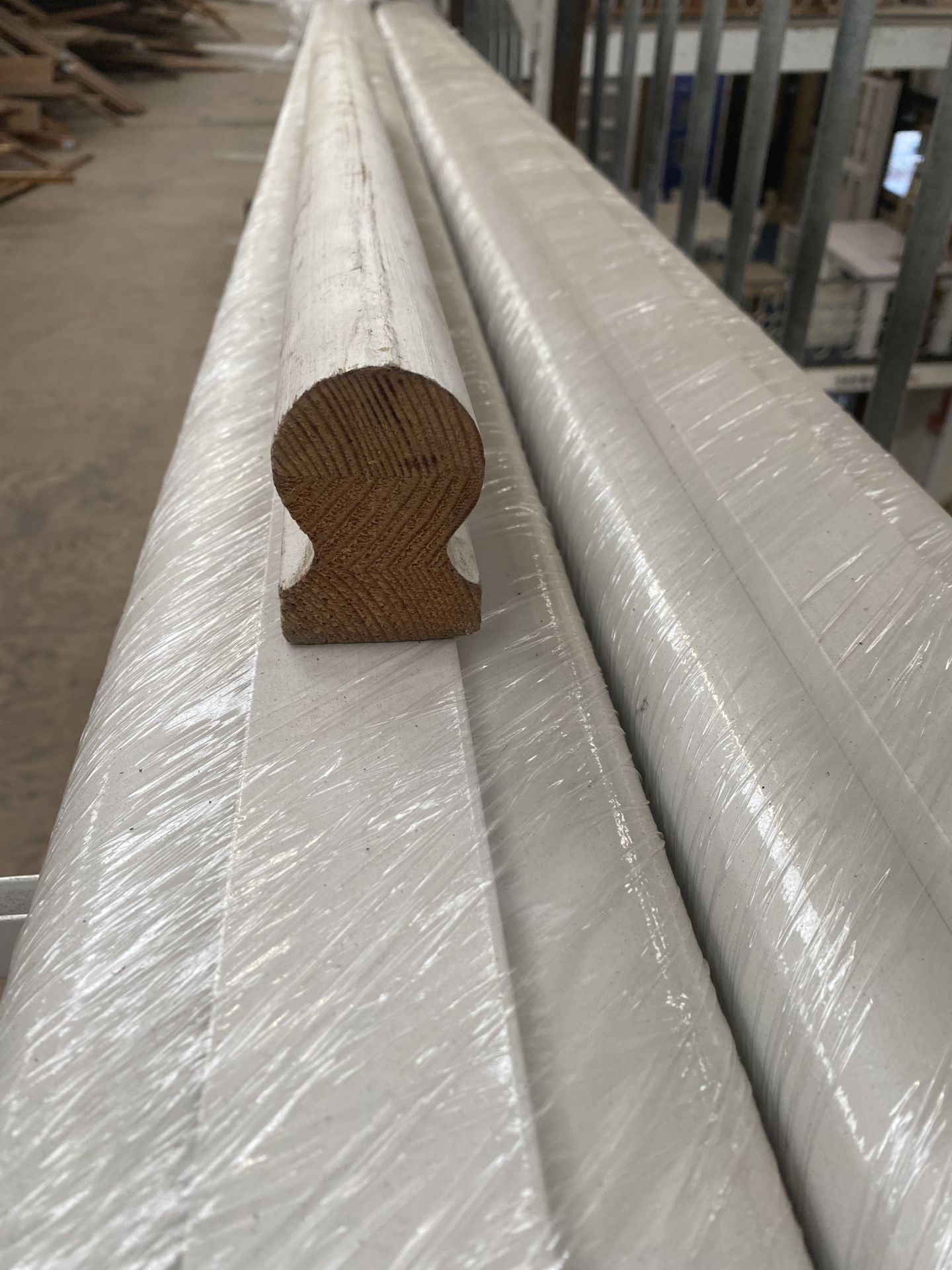 Een bijzondere vondst uit een magazijnopruiming: een nieuwe, nog verpakte armleuning van maar liefst 5 meter lang! Deze leuning is wit gegrond, dus klaar om af te lakken in jouw gewenste kleur.