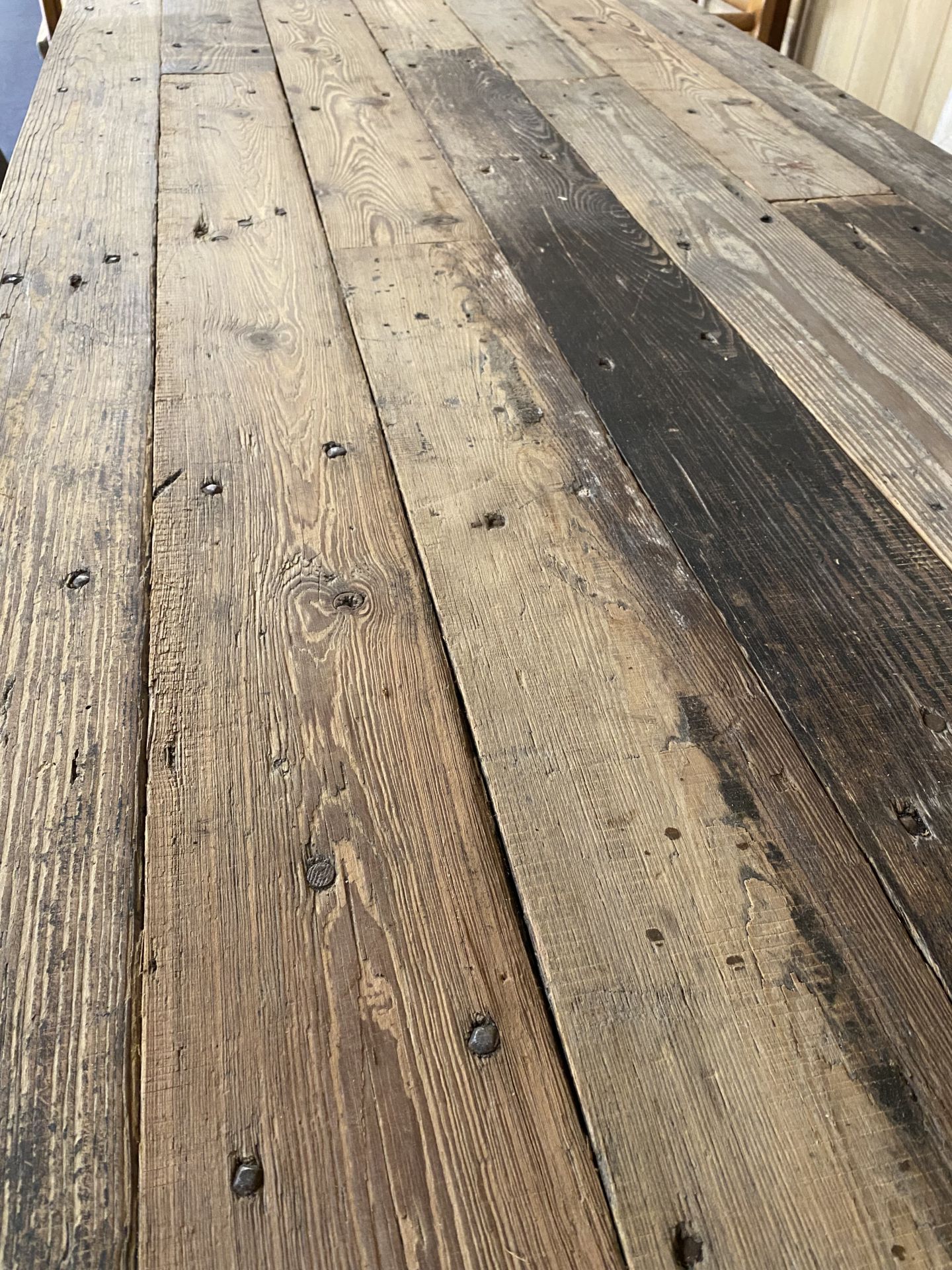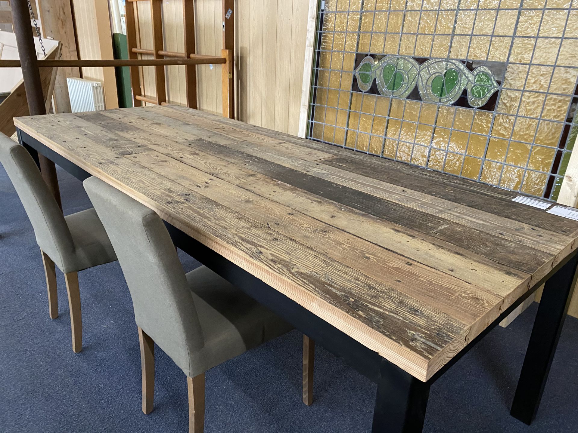 Elke tafel wordt volledig met de hand gemaakt in onze werkplaats. Of je nu kiest voor kloostervloerhout, eiken, sloophout of een andere houtsoort – jij bepaalt het uiterlijk. Ook de afmetingen, afwerking en kleur van het staal kunnen naar wens worden aangepast.