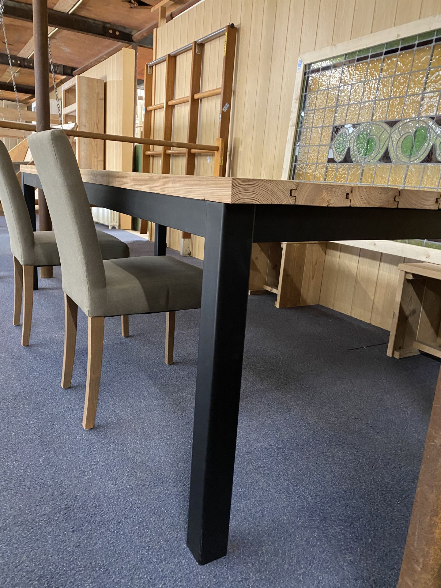 Een ideale tafel voor wie houdt van stevig, tijdloos en uniek design. Perfect als eettafel, werktafel of vergadertafel. Volledig op maat te realiseren.