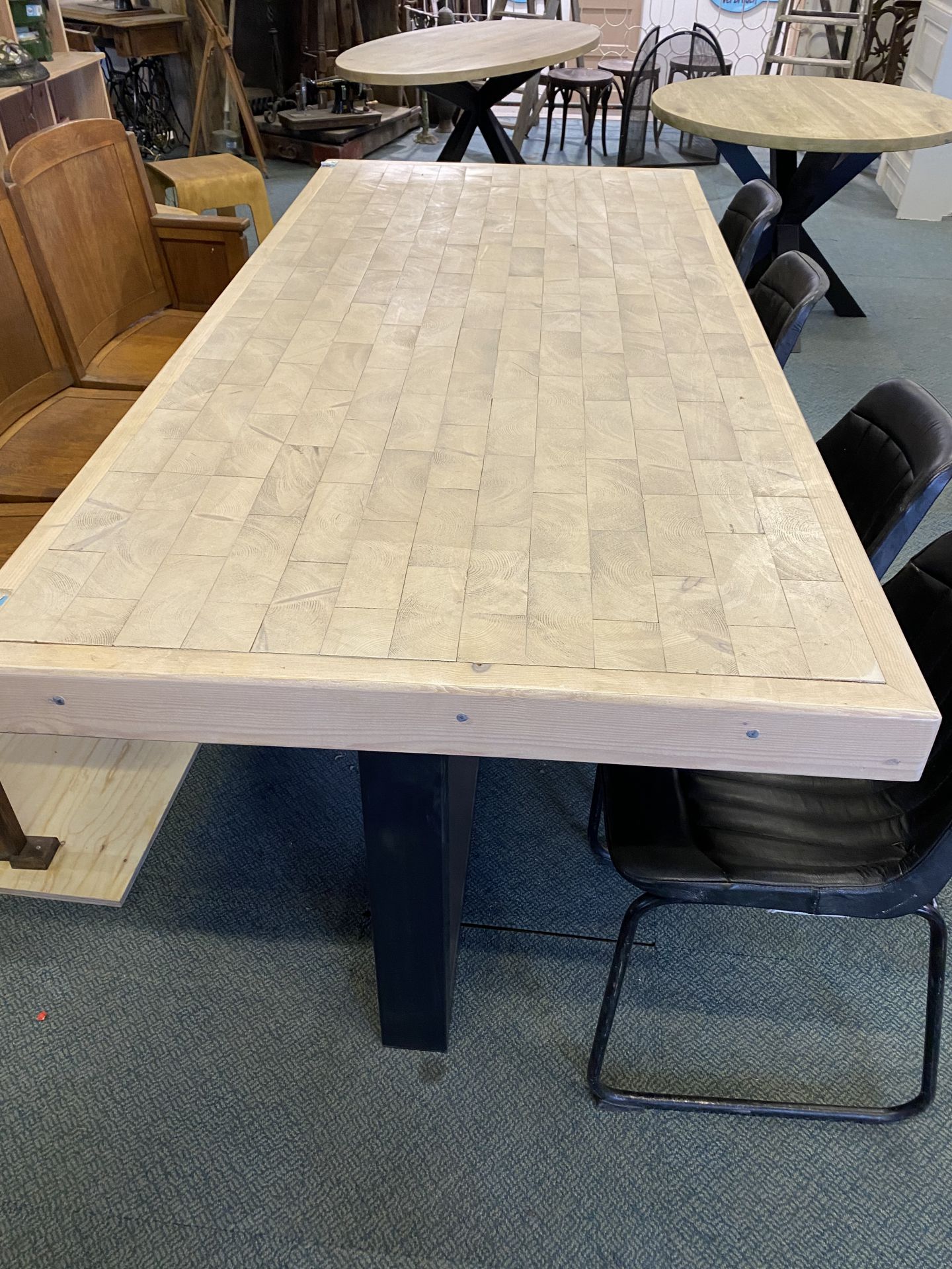 Het gebruik van kopsvurenhout maakt de tafel bijzonder slijtvast en geschikt voor intensief gebruik. Het patroon van de kopse kanten geeft een speels en toch strak effect, dat goed past in zowel moderne als landelijke interieurs.