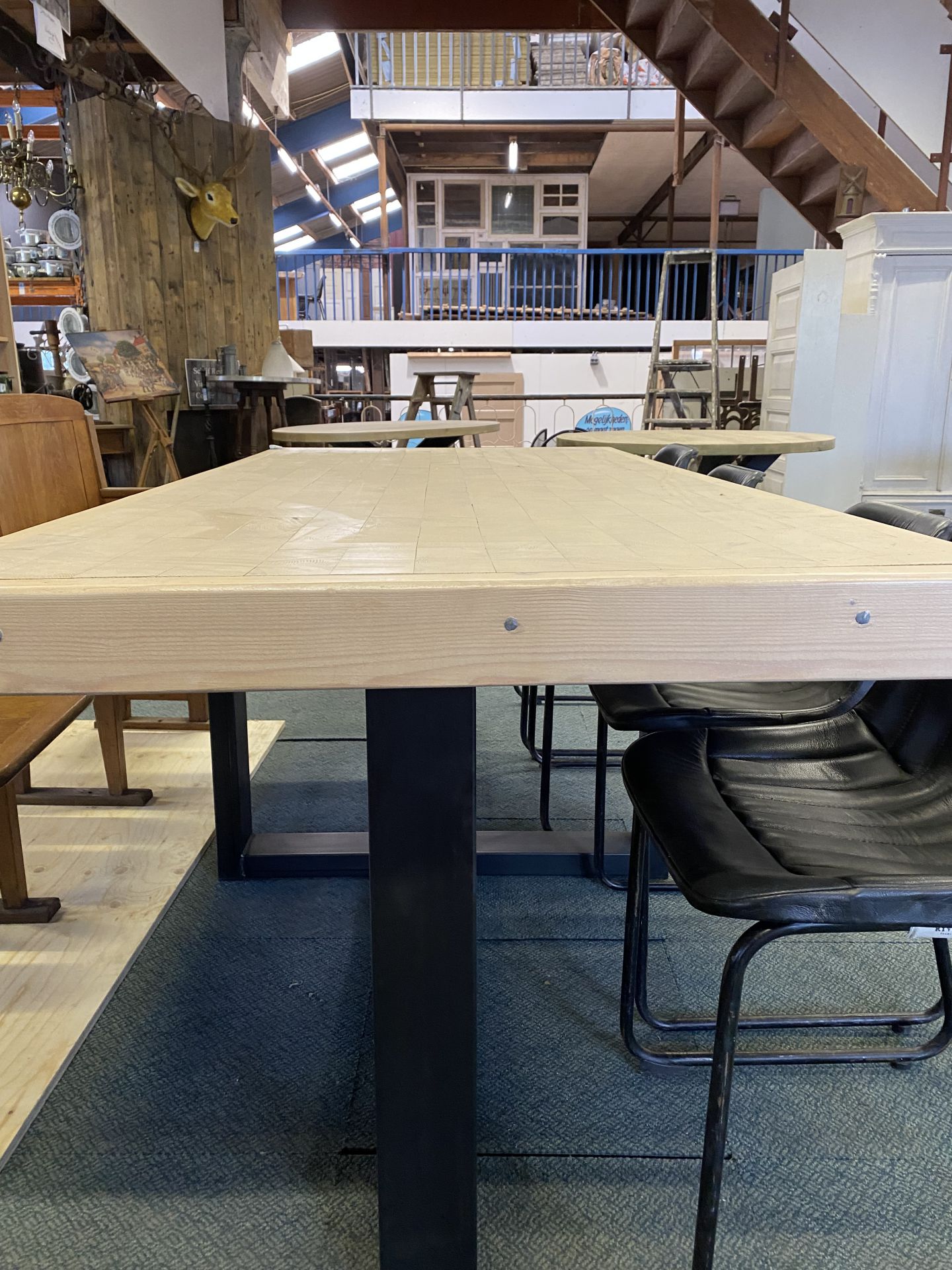 Deze tafel is een echte blikvanger en combineert functionaliteit met een verrassend design. Kom langs in onze winkel om het hout en de unieke structuur zelf te ervaren en laat je adviseren over maatwerk en afwerking.
