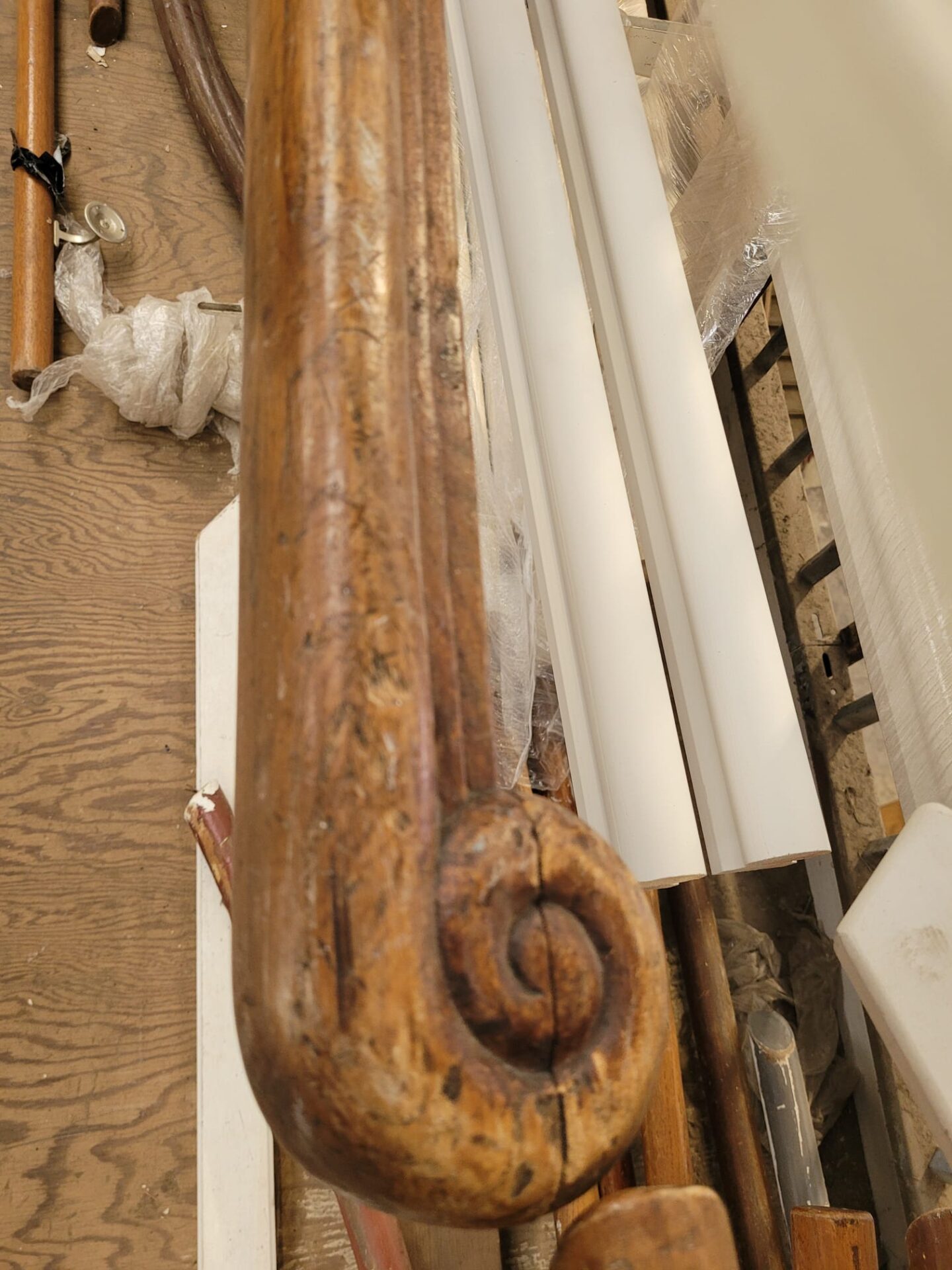 Deze prachtige antieke armleuningen zijn echte blikvangers voor restauratieprojecten of creatieve meubelbouw. Ze hebben een klassiek sleutelgatprofiel en eindigen in een elegante krul. Een detail dat je vandaag de dag zelden nog ziet.