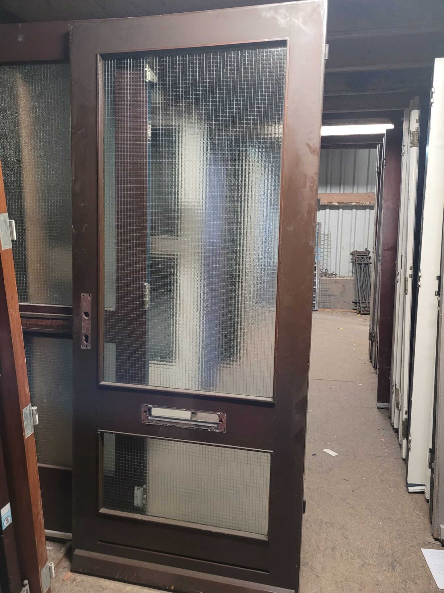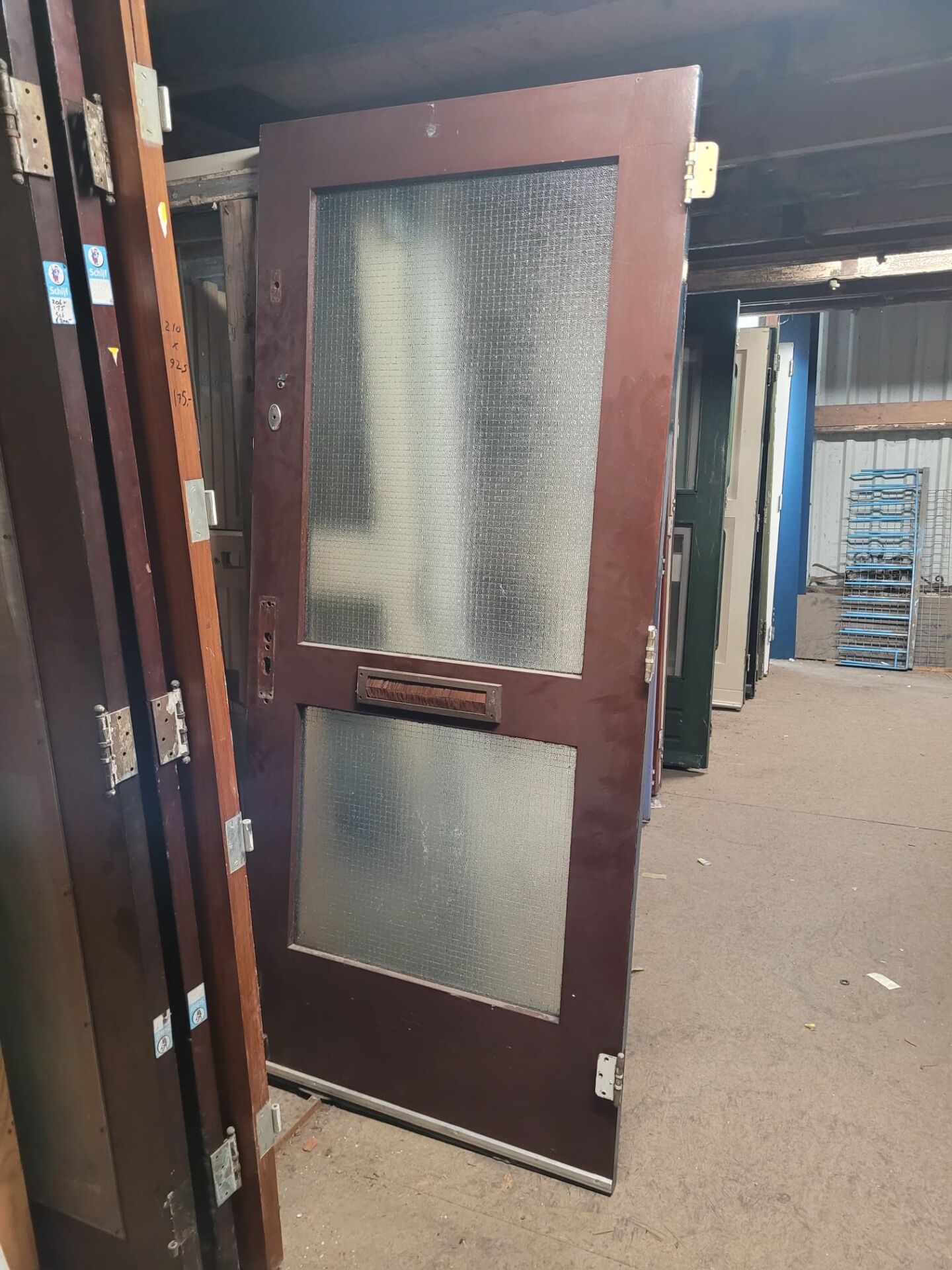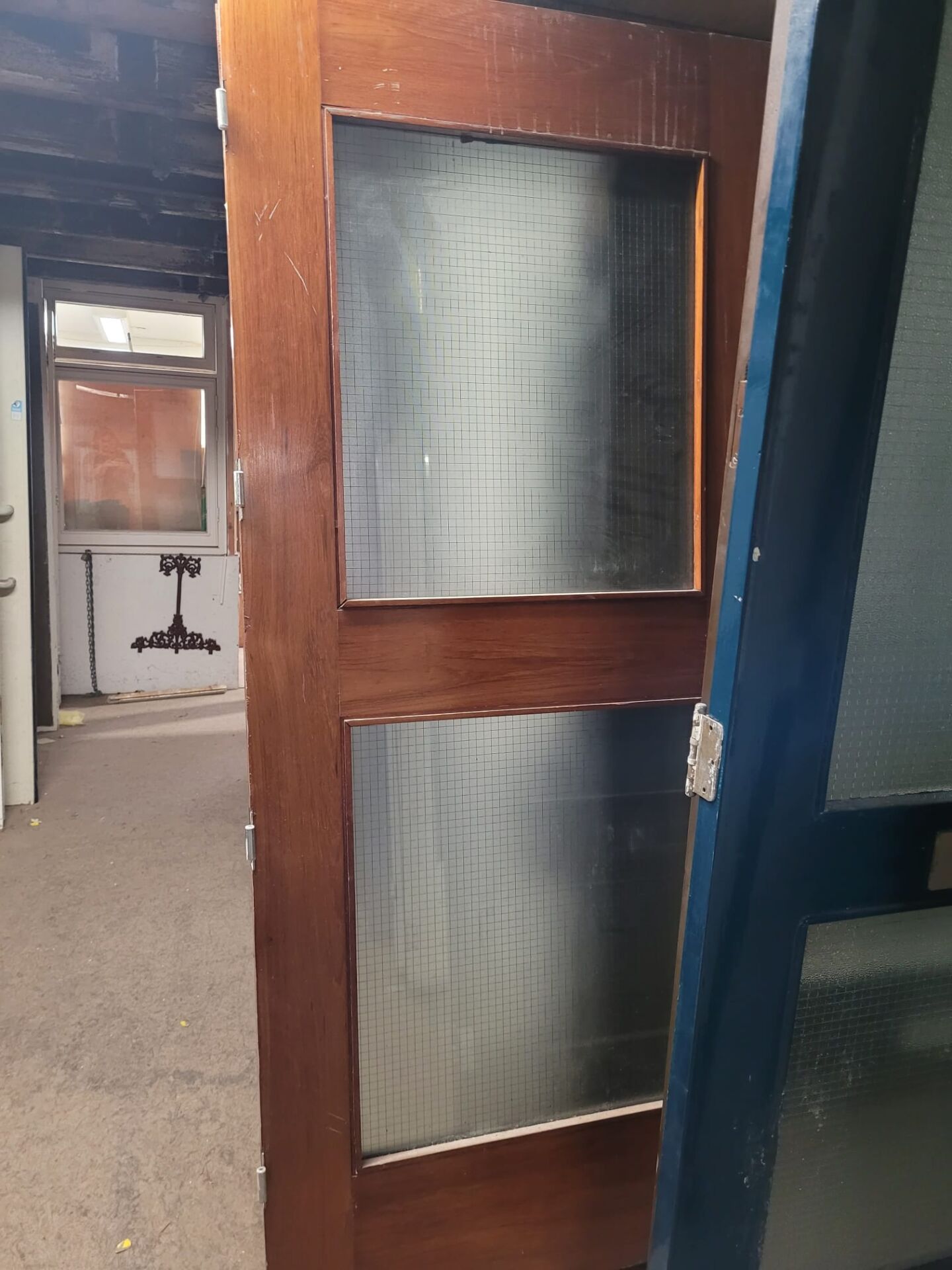 In gang pad 0 op de eerste verdieping staan verschillende voordeuren met twee ruiten van draadglas. Deze deuren hebben een robuuste uitstraling dankzij het versterkte glas en zijn perfect voor wie op zoek is naar karakter en stevigheid in één. De draadstructuur in het glas varieert – van klassiek vierkant raster tot fijner patroon. Daarbij sommige enkel- en de andere dubbel glas.